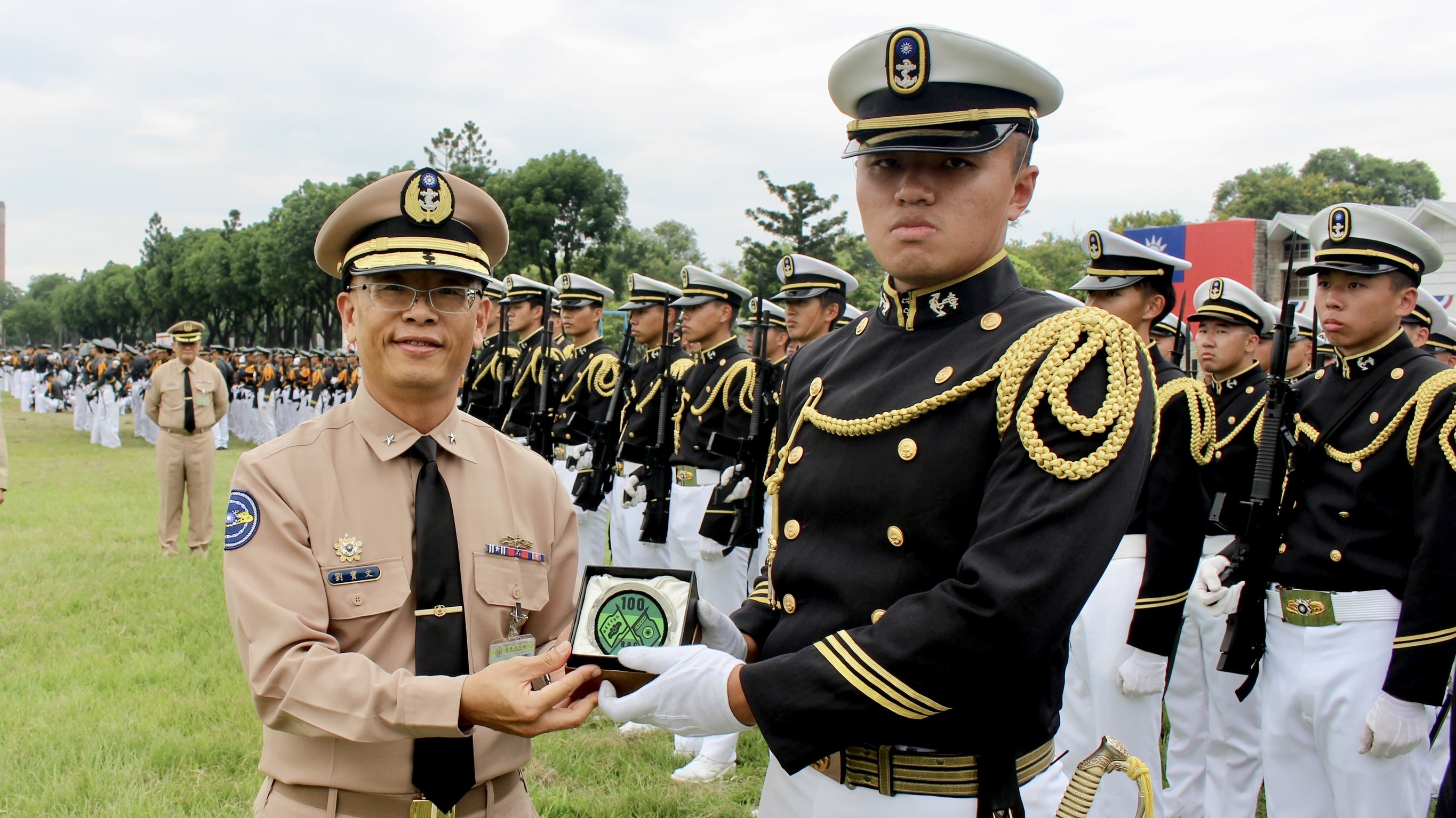 為展現黃埔建校百年的榮耀與壯盛軍容,國軍各軍事校院閱兵連學生已進駐陸軍官校實施整訓,海軍官校校長劉少將日前率政戰主任等員赴陸軍官校視導學生整訓情形,並頒發同學黃埔百年校慶閱兵連紀念臂章與慰問品,鼓勵同學把每次練習與預檢當作正式操演,全力以赴,展現海官人的認真、自信與榮耀。