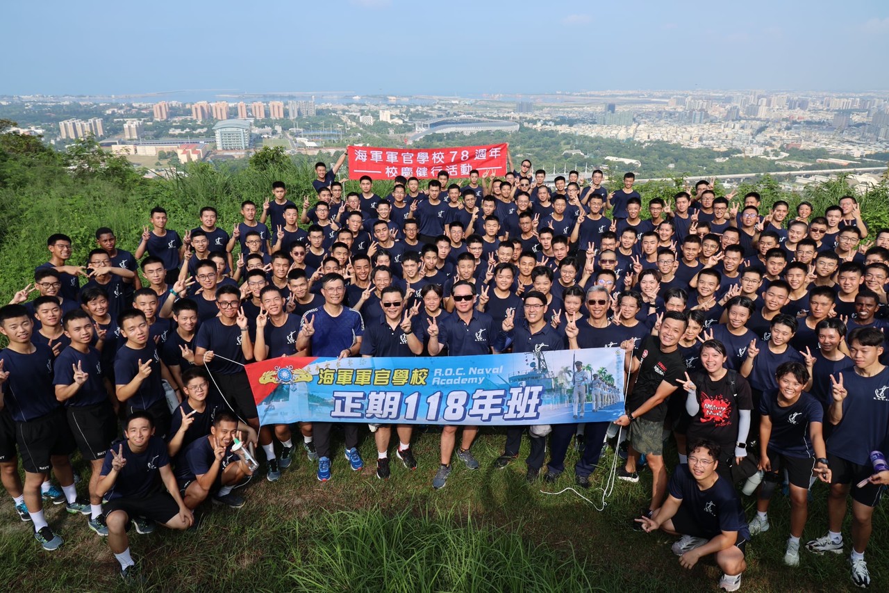 校慶將屆,海軍官校特別舉辦登山健行活動;期間,同學們相互加油、砥礪,成功登頂。