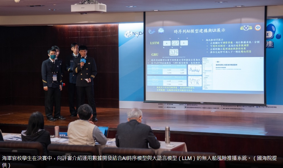 海軍官校與理工學院此次組成「海洋的後裔」參賽,在鍾育仁老師與陳冠宇老師的悉心指導下,由海軍官校正期116年班羅濬智、正期117年班張翊翔、謝祥佑、胡沁榆、王祥宇,以及理工學院環境資訊系碩士班林廉貴等學生組成,以「無人船的第二大腦:結合 RAG 技術與大語言模型的風險推估系統」為研究主題。