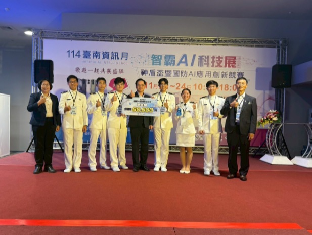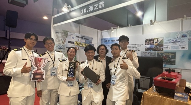 為提升學生對於國防AI的實際運用,海軍軍官學校船舶機械學系盧又瑄、黃梓芫、李正陽、蔣佳縉、白冠昇及羅鈺傑等6位學生,在徐慶瑜教授及陳雅惠助理教授指導下,以「海之霸」團隊名義參加「2025國防AI應用創新競賽」,以「微型無人水面載具群控系統」為題,在學生組共50隊的參賽中脫穎而出,榮獲「第三名」銅獎。