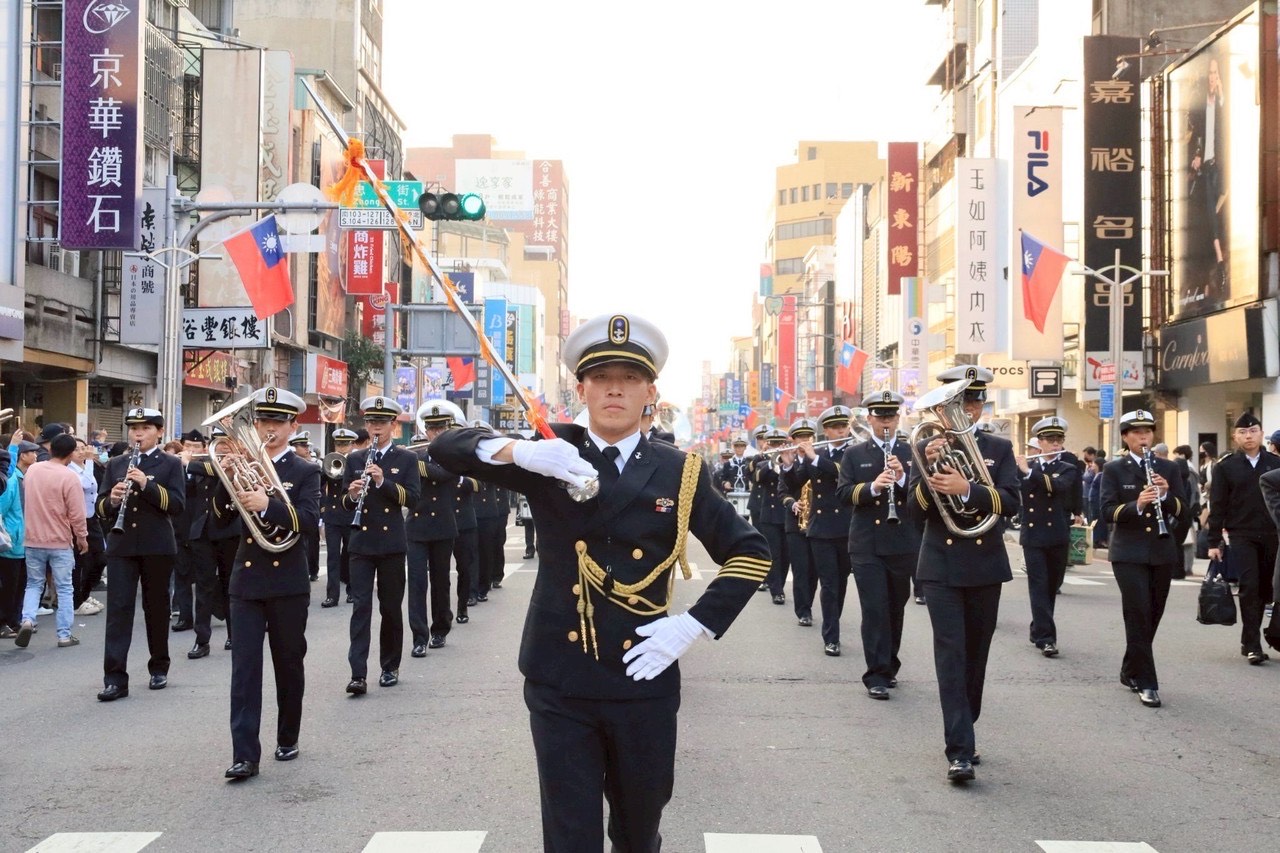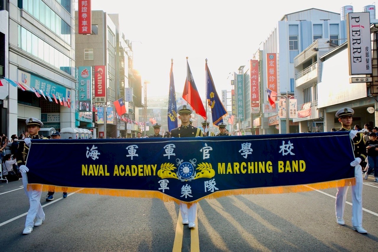 此次活動特別與陸軍、空軍及管理學院三所軍校同場競演,鼓點與樂聲交織激盪,現場氣氛熱烈、士氣高昂。 演出結束後,軍樂隊隨即展開踩街遊行,行進於嘉義街頭,震撼樂響吸引沿途民眾駐足觀賞、報以熱烈掌聲,充分展現官校學生蓬勃朝氣與青春活力。